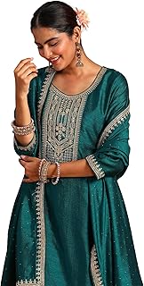 Polyester Women's Teal Embroidered Straight Kurta Trouser With Dupatta